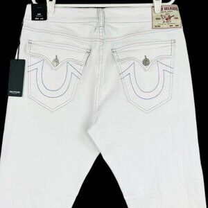 True Religion Men Geno Relaxed Slim Stretch Optic White Jean 34x32 Flap NWT $159