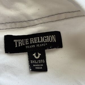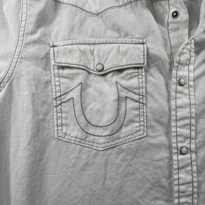True Religion Men Pearl Snap Shirt Western Boho Short Sleeve White 3XL F169