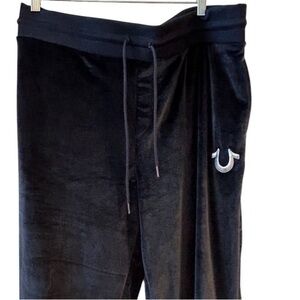 Keywords: True Religion, men's jogger, 3XL, blue pants, velour, relaxed fit, elastic waistband, drawstring, high rise, tapered leg, signature logo, new with tags.