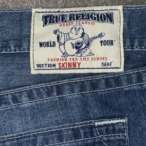 True Religion Mens 40 Skinny Fit Jeans Blue Distressed Denim Designer USA