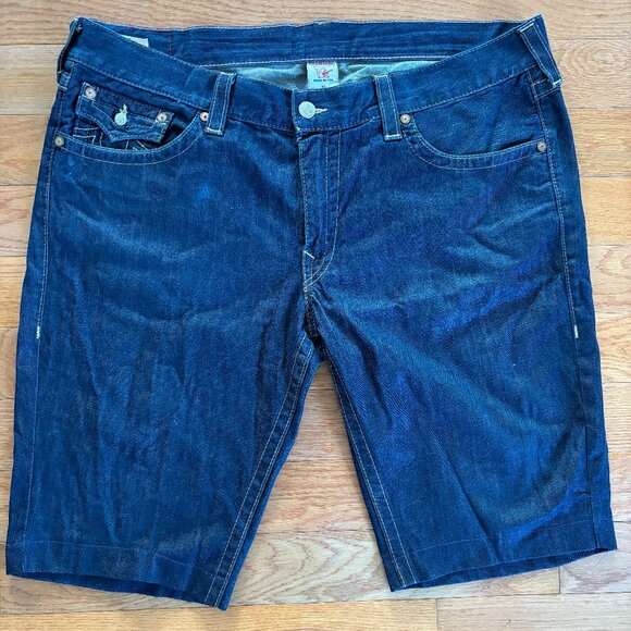True Religion Mens 42 Relaxed Baggy Jean Shorts Ricky Dark Blue Wash Denim USA