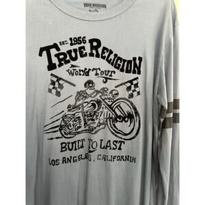 True Religion Men's Blue Built to Last World Tour Crew Neck Sweatshirt Size XL