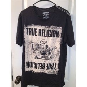 True Religion Men’s Buddha Pushprint Short Sleeve T-Shirt Shirt Sz Mediu…