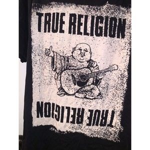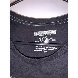 True Religion Mens Buddha Pushprint Graphic Short Sleeve T-Shirt Size Medium Black Shirt in good condition.