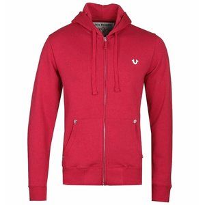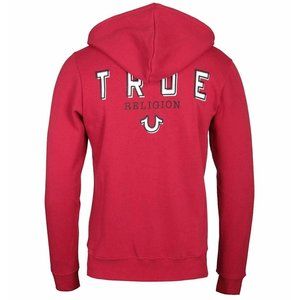 True Religion Men's Classic Logo Zip-Up Hoodie Sweatshirt in Ruby Red