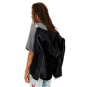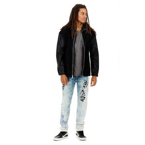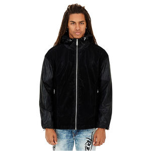 True Religion Men's Contrast Mesh Full Zip Front Anorak Hooded Jacket in Black