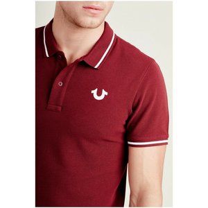 True Religion Men's Crafted With Pride Short Sleeve Polo Shirt in Burgundy