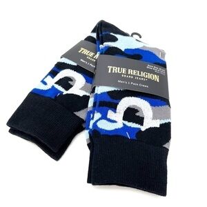 True Religion Men’s Crew Socks Blue Black Gray Camo Two (2) Pair Cotton New NWT
