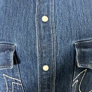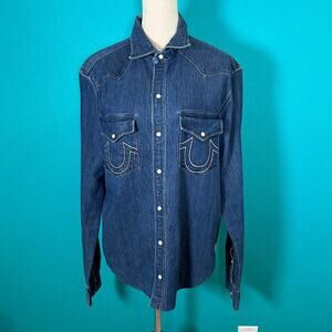 True Religion Mens Dark Wash Indigo Blue Western Shirt Cotton Button-Down Size L