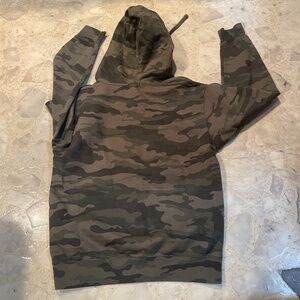 Men’s size Small Green camo print Foil Buddha logo graphic Pullover hoodie style Soft sweatshirt fleece Y2K / streetwear vibe Great pre-owned condition