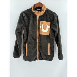 True Religion Men's Fuzzy Jacket Size LARGE Color Black HS Sherpa Jacket EUC