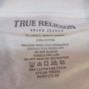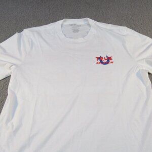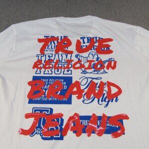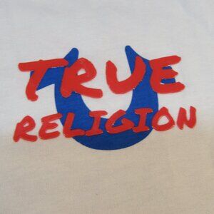 True Religion Men’s Graphic Tee – Size 2XL – Red & Blue Logo Graphic on White