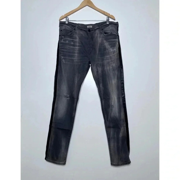 True Religion Mens Gray Rocco Relaxed Skinny Light Distressed Side Stripe Jeans