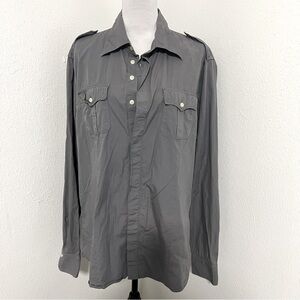True Religion Men’s Gray XXXL Button Up Long Sleeve Shirt Logo Western Cowboy