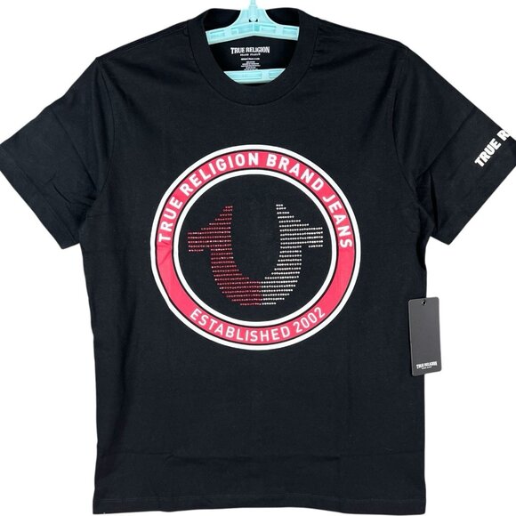 True Religion Men's Jet Black Strike Embellished Short Sleeve T-shirt Medium NWT