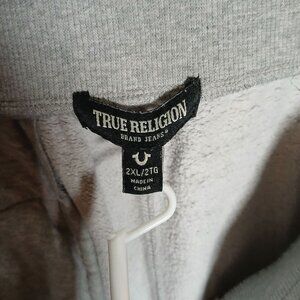 True Religion Mens Jogger Sweatpants Size 2XLCotton Blend Blue Lettered Gray