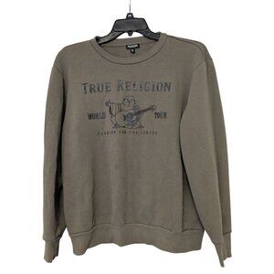 True Religion Mens L Green Sweatshirt Buddha World Tour Mens Size Large *READ*