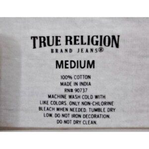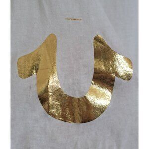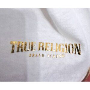 True Religion Men's M White Short Sleeve T-Shirt Gold Logo