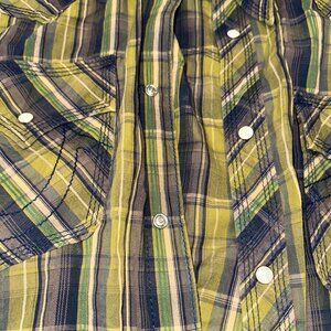 Elevate your casual wardrobe with this True Religion Multicolor Plaid Western Shirt, featuring bold plaid patterning and classic Western-inspired pearl snap buttons. Designed with dual chest flap pockets and a pointed yoke, this shirt offers rugged style with a laid-back fit, perfect for casual days or nights out.