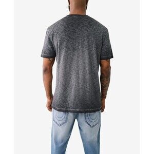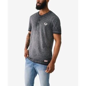 True Religion Men's Overdye Henley Cotton Short Sleeve T-Shirt, Jet Black, M