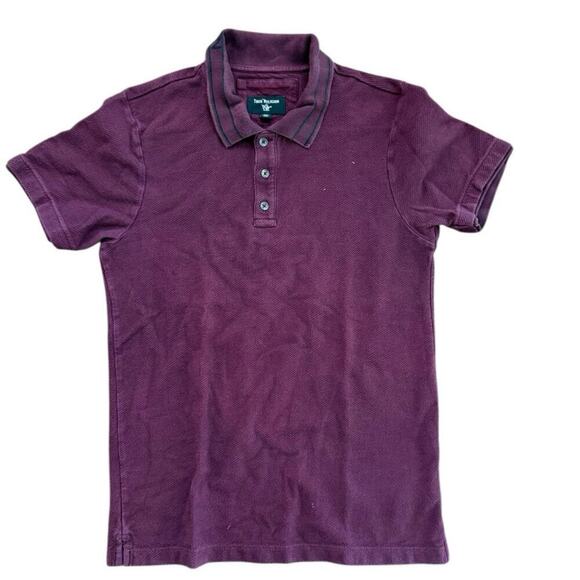 True Religion Men's Red Auburn Waffle Knit Thick Polo Shirt Size Small