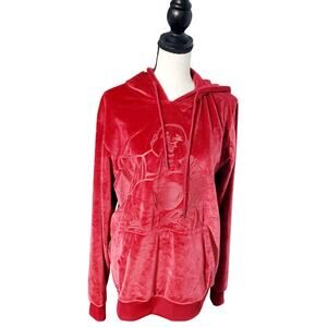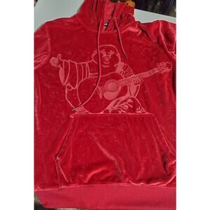 True Religion Mens Red Crushed Velour Budda Hoodie Size M Streetwear Hipster