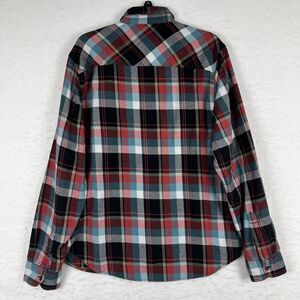 True Religion Mens Red Multicolor Plaid Flannel Shirt Long Sleeve Button Down Size 2XL Medium weight.