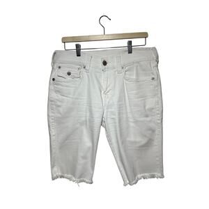 True Religion Men's Ricky Flap Elastic White Denim Shorts Cut Off 100775 Sz 31W