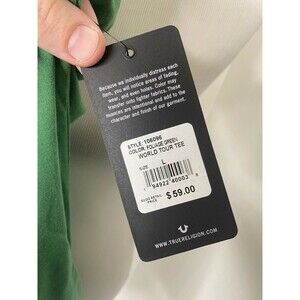 Mens size Large True Religion Would Tour big logo green short sleeve T-shirt. very clean and well kept new with tags condition, no damage or stains that we saw at all.