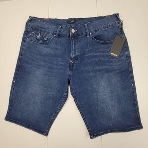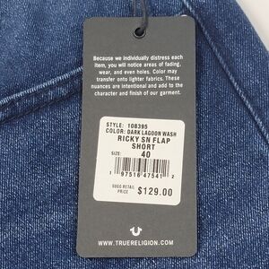 True Religion Men's Size 40 Denim Ricky SN Flap Dark Lagoon Wash Jean Shorts New