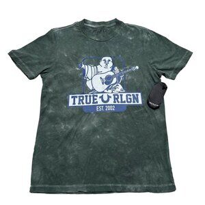 True Religion Mens Size S Buddha Logo Graphic Tee Balsam Green Tie Dye T-Shirt