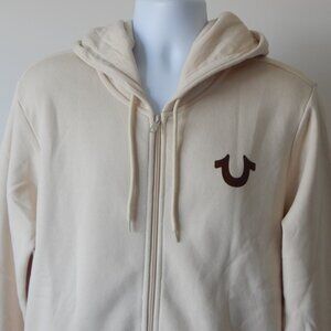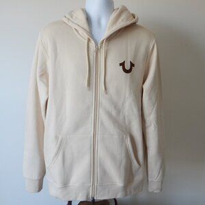 True Religion Men’s Solid SRS Full Zip Fleece Hoodie Jacket Light Beige LRG NWT
