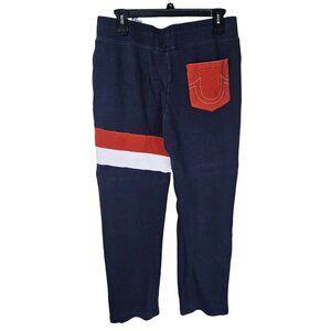 True Religion Mens Spellout Navy Orange Hoodie & Sweatpants Set XL/L Casual