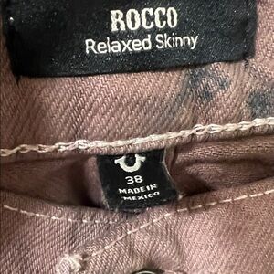 True Religion straight jeans with a bold brown and black pattern. Ideal for a trendy look.