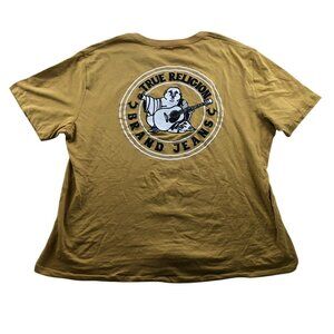 True Religion Mens T-Shirt Size 2XL Short Sleeve Yellow Graphic Tee Casual Crew
