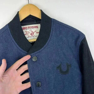 True Religion Men's Varsity Style Jacket - Navy & Black Colorblock