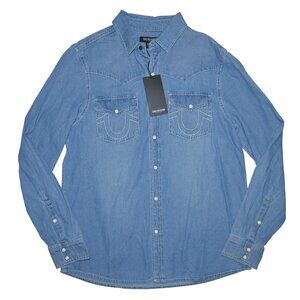 True Religion Pearl Snap Denim L/S Shirt Size L Vintage Light Wash Chambray NWT