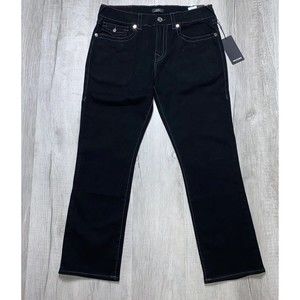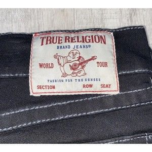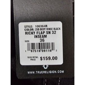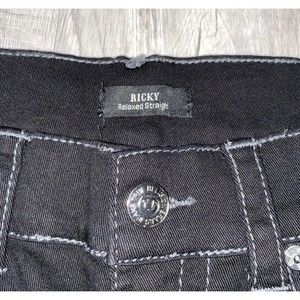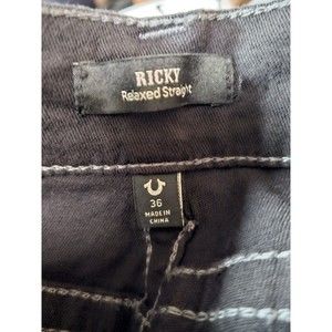 True Religion Mens size 36x32 Ricky Flap SN Relaxed Straight Jeans Black Denim