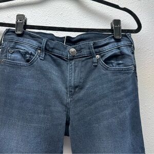 True Religion Mid Rise Super Skinny Dark Wash Zipper Ankle Jeans