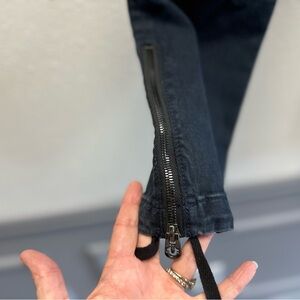 True Religion dark blue women's jeans with a modern design. Perfect for casual outings. Excellent used condition with great zipper & draw string detail on ankles, oversized angled front pockets, great detail on these jeans!