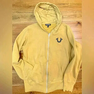 True Religion full zip hoodie in mustard yellow. Women’s size small. Missing drawstring.