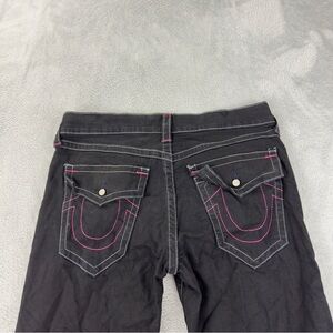 True Religion NWOT Ricky Flap SN 105712 Men's Size 35x33 Thick Pink Stitching in fair pre owned condition as shown in the photos with some staining and a tear in the crotch area that will need repairing.