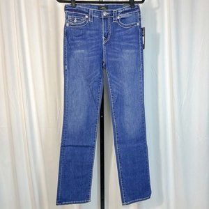 True Religion NWT Sz 28x32 Billie Big T Flap Straight Leg Mid Rinse
