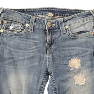True Religion Nat Clr Crystal Pave Bootcut Horse Shoe Flaps Back Pocket Size 29