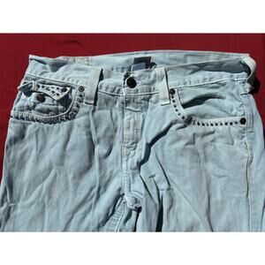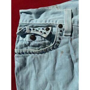 True Religion No. 1 Ricky Light Blue Denim Men's Jeans 34W x 32L Rhinestoned