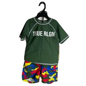 True Religion Olive Size 2T UPF 50+ Rash Guard Swim Trunk Set New $79
