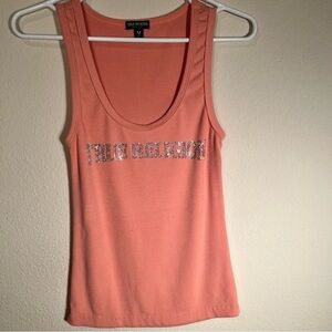 True Religion Pink Ribbed Tank Top Rhinestone Logo