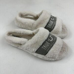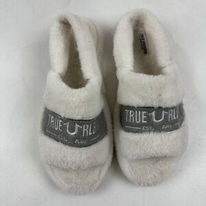 True Religion Plush Faux Fur Slide Slippers Sling Back Fuzzy Ivory XL 9.5-10.5