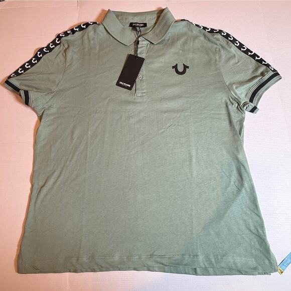 True Religion Polo Shirt XL Green Bay Logo Trim Relaxed Fit Short Sleeve NWT