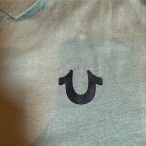 New with tags True Religion short sleeve polo shirt in the Green Bay colorway. Features the signature horseshoe logo on the chest and logo trim detailing along the shoulders.